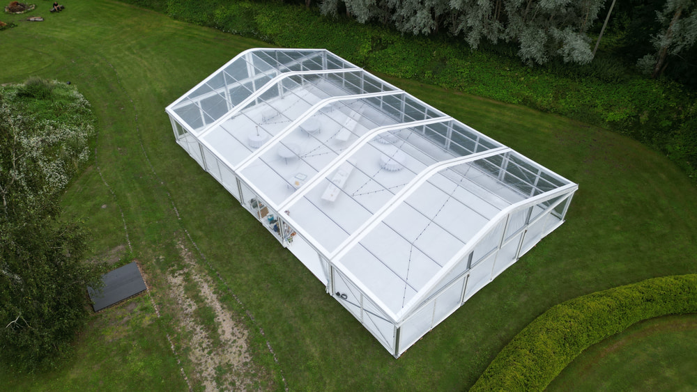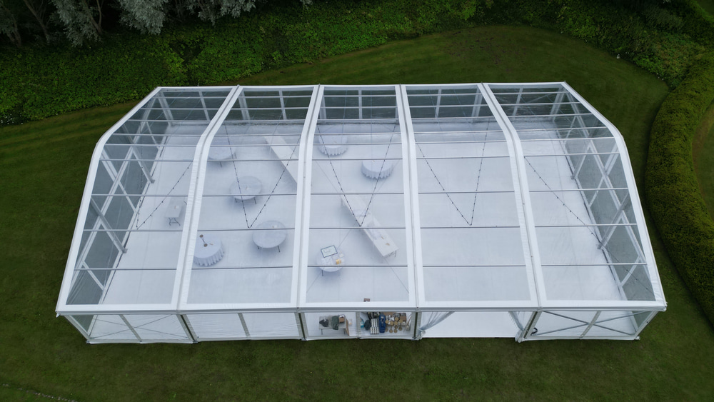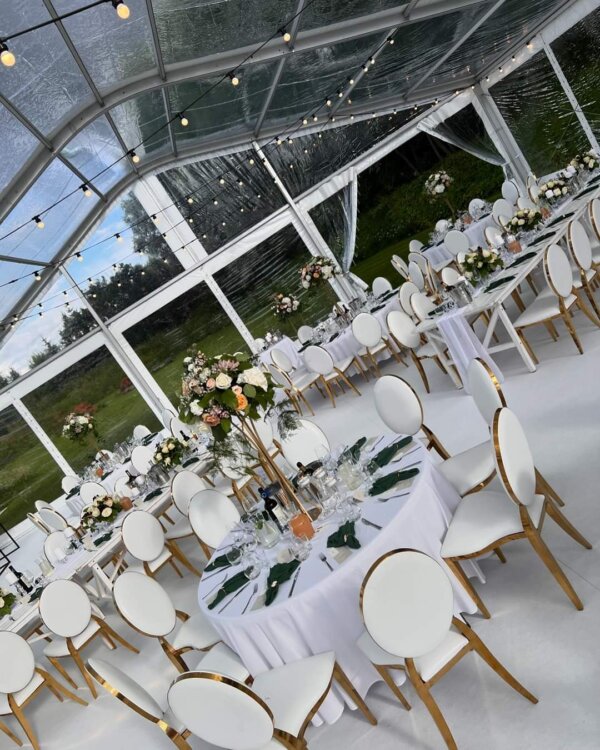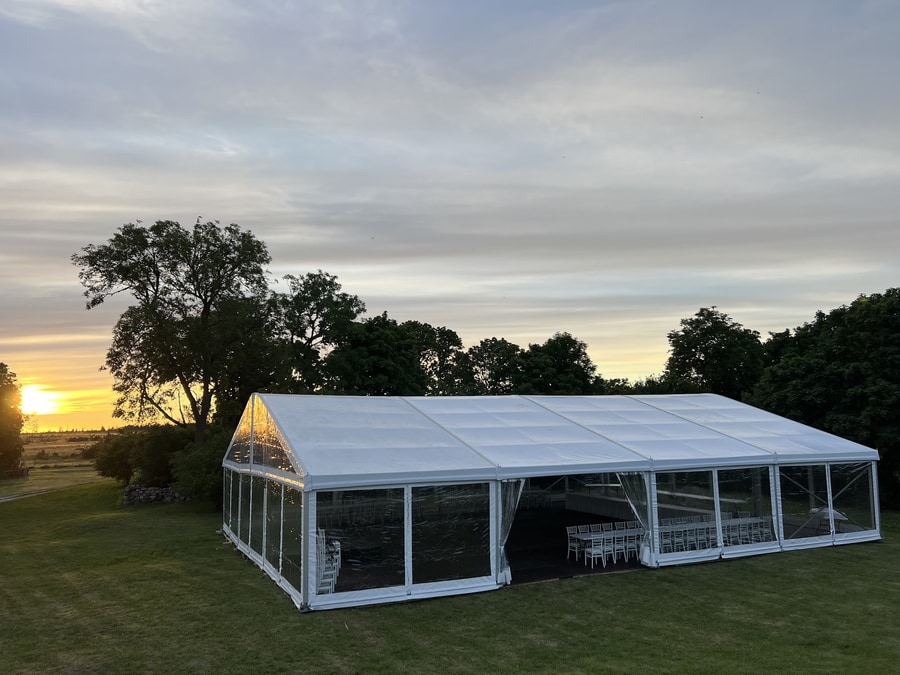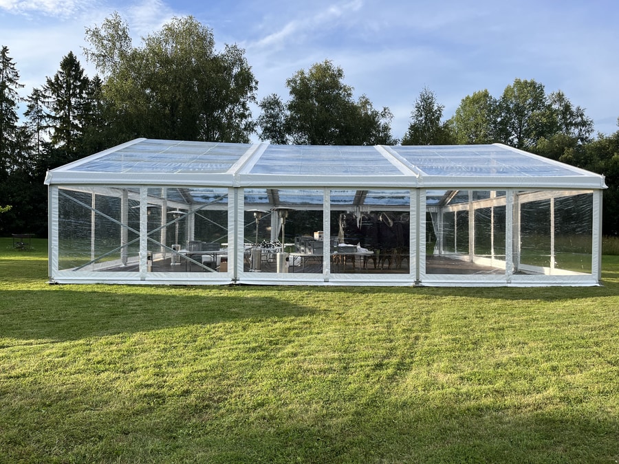 - Läbipaistev või valge katus — vali oma ürituse stiilile sobiv